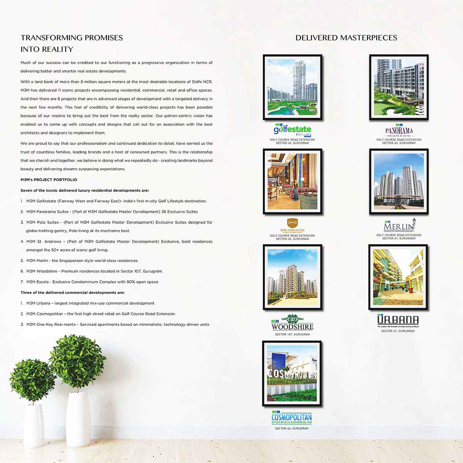Disclaimer:- Welcome to M3M SkyWalk (“Website”). The contents of this website are for general informational purposes only. By using or accessing this Website and/or the hyperlinks embedded/ mentioned in the Website you agree to abide by the terms and conditions, as set forth herein and as contained in the Website without any qualification or limitation. In the event you do not accept/ agree to the terms of this Disclaimer, you are requested not to use the Website or download materials from the Website. Every endeavor has been made to keep the information updated. However, we make no representations or warranties of any kind, express or implied, about the completeness, accuracy, reliability, suitability or availability with respect to the Website or the information, products, services, or related graphics contained in the Website for any purpose. The Website and all its content are provided on an “as is” and “as available” basis and is intended for informational purposes only. No information given under this Website shall be treated as a warranty or representation by us. Your use of the Website is solely at your own risk. This Website is for guidance only. It does not constitute part of an offer or contract. The contents, including design and specifications are subject to change without prior notice. Computer generated images are the artist’s impression and are an indicative of the actual designs. By using and/or accessing this Website, you, the viewer/user acknowledge that the information including any material/ documents (such as brochures and marketing collaterals) on this Website are solely for informational purposes and you have not relied on this information for making any booking/ purchase/ intention to purchase/ invest in any project(s) of M3M SkyWalk and/or its affiliates. Nothing herein shall be construed as any invitation, or offer for investment or deposit within the terms of the applicable law (as amended from time to time) including without limitation SEBI Act, 1992, Companies Act 2013 etc. and we shall not be liable for any consequence of any action taken by the viewer relying on such material/ information on this Website. The particulars contained on the Website mention details of Projects/ developments undertaken by M3M SkyWalk and/or its affiliates. The contents are being modified in terms of the stipulations/ recommendations under the Real Estate Regulation Act, 2016 and Rules made thereunder (“RERA”) and accordingly may not be fully in line thereof as of date. Use of information shall be governed by Indian laws, RERA; subject to jurisdiction of Competent Authority under RERA, courts at Gurugram/ Haryana India. You are further advised to verify all the details, including area, amenities, services, terms of sales and payments and other relevant terms independently with the sales team independently, subject to prior appointment during working hours and speak to one of our sales staff, prior to concluding any decision for buying any unit(s) in the said project. In no event shall M3M SkyWalk, its affiliates, employees, directors and/or officers be made liable for any claim as a result of any inaccuracies in the information provided in this Website, though all efforts have to be made to ensure accuracy and under no circumstances shall we be liable for any expense, loss or damage including, without limitation, indirect or consequential loss or damage, or any expense, whatsoever arising from use, or loss of use, of data, arising out of or in connection with the use of this Website.